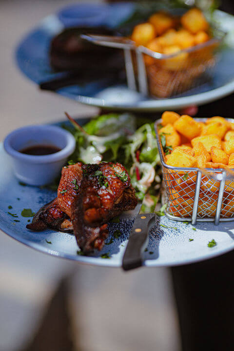 Puis viennent nos gambas grillées—de grosses crevettes caressées par la flamme, leur chair sucrée infusée d’une touche de fumée et d’ail. Elles arrivent à votre table encore grésillantes, exigeant toute votre attention. C’est une cuisine qui refuse d’être le bruit de fond de votre conversation.